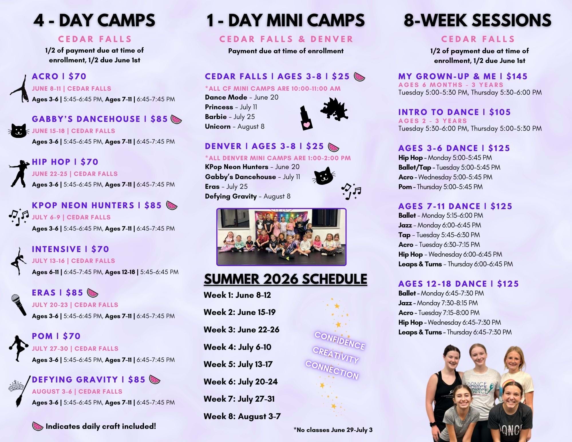 Join us for an unforgettable summer of dance, art, and piano/vocal camps and classes for ages 6 months–18 years.